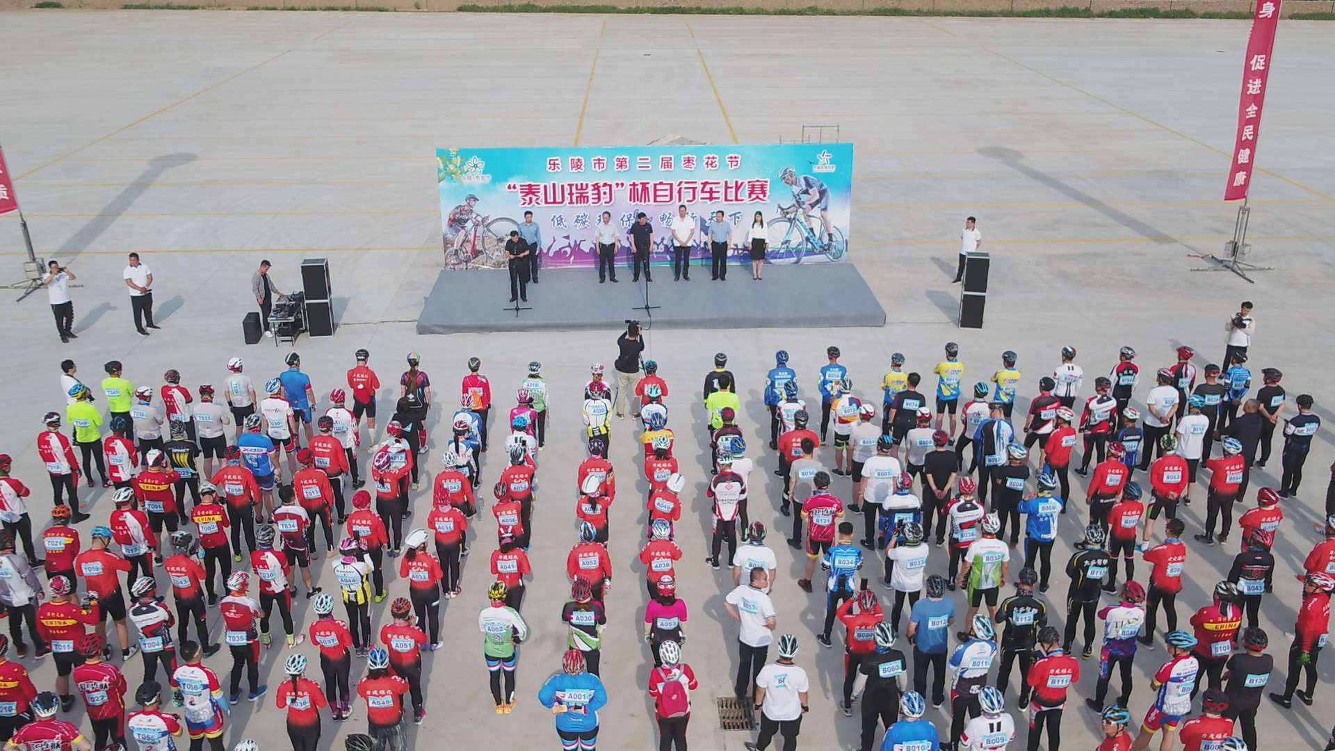为更好的推动全民健身运动的开展,让人民大众享受自行车运动带来的乐趣,充分了解泰山瑞豹自行车产品的文化魅力,6月6日,乐陵市第二届枣花节暨“泰山瑞豹杯”自行车赛迎着初夏艳阳与盛开枣花鸣枪开赛。来自五湖四海的自行车运动员及爱好者相聚在飘满枣花香气的乐陵,围绕着30万亩枣林里开启了一场自行车运动的枣城热恋。乐陵市市委书记樊廷雷、市长王大山出席开幕式。