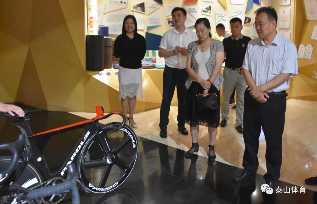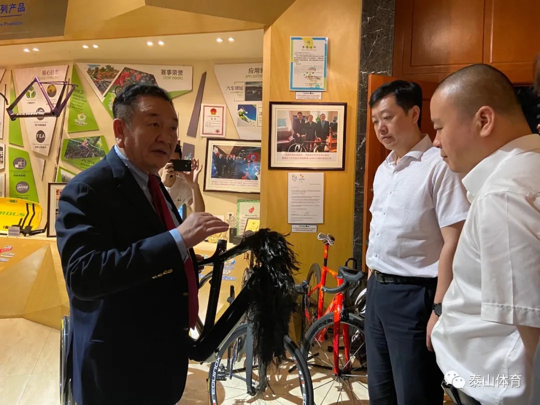 同日,菏泽市体育局局长史长华,第十三届全国政协教科卫体委员会委员、宋江武校校长樊庆彬一行莅临泰山集团调研指导。在调研过程中,史长华局长对泰山集团在党组织建设、竞技体育器材、人造草坪、碳纤维自行车、医养健康、冰雪装备以及在科技创新、体医融合、新旧动能转换等方面的工作给予了高度评价,双方针对市场开发、项目合作等事宜达成初步共识。