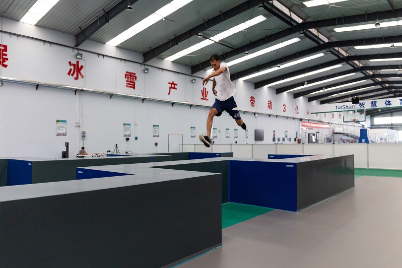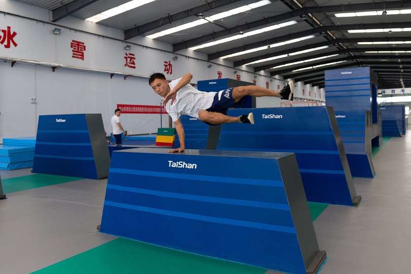 落地翻滚、鱼跃翻滚、登墙跳……在泰山智慧体育冰雪馆,几位身姿矫健的运动员尽情展现着各种各样的高难度动作,在每个飞跃、腾挪、攀跳的瞬间,尽情展现着对抗、流动、惊险的运动之美。
