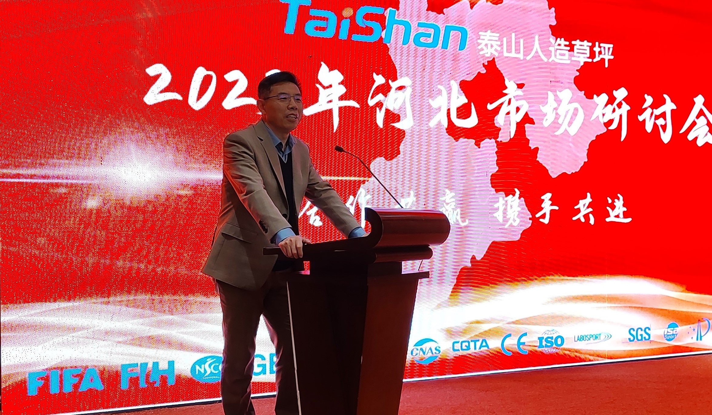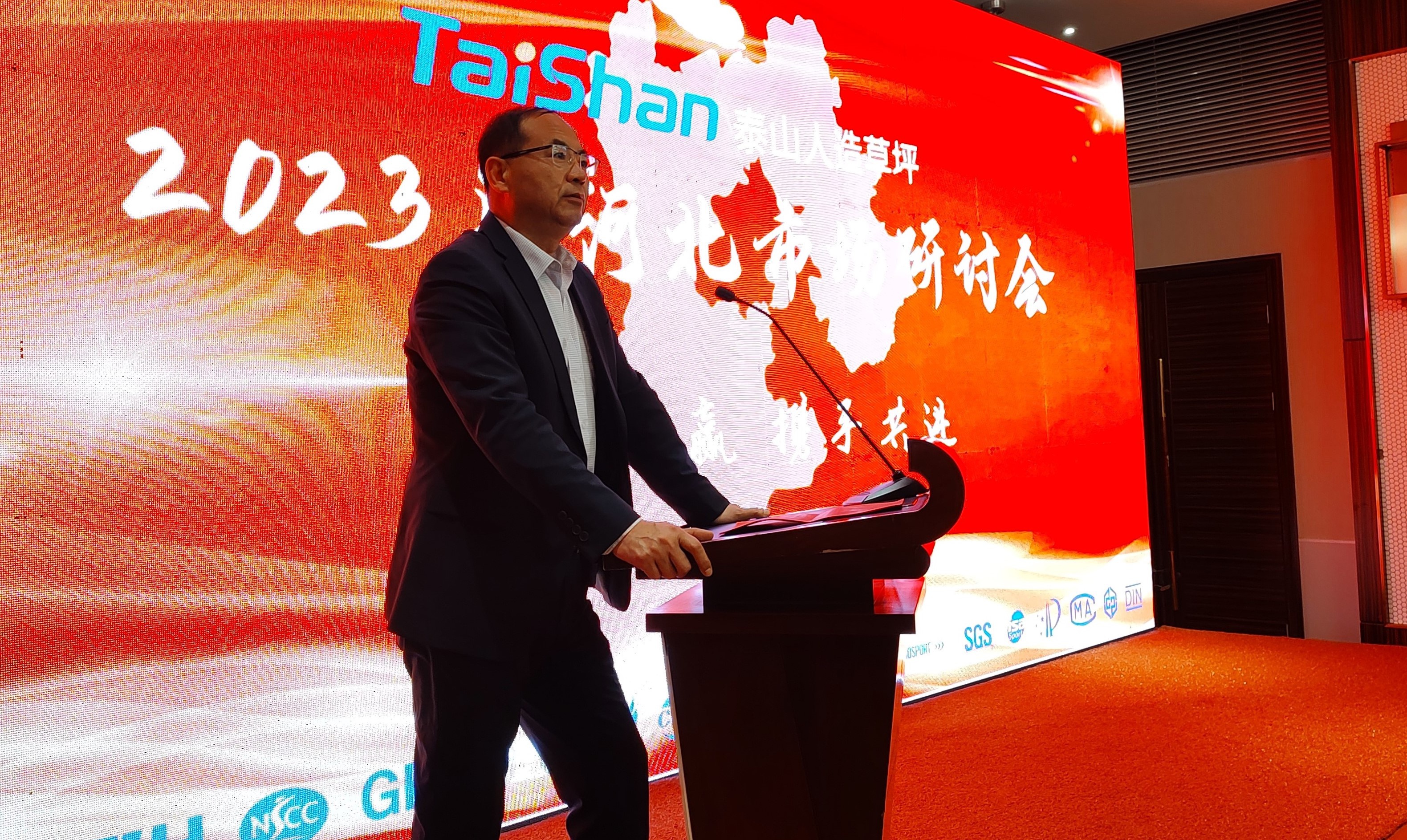 会上,中国体育用品检测中心检验部主任刘洋讲到,今天的泰山人造草坪已发展成为人造草坪行业内深具影响力的公司,希望泰山人造草坪和行业同仁一起积极进取,为人造草坪事业发展贡献力量。