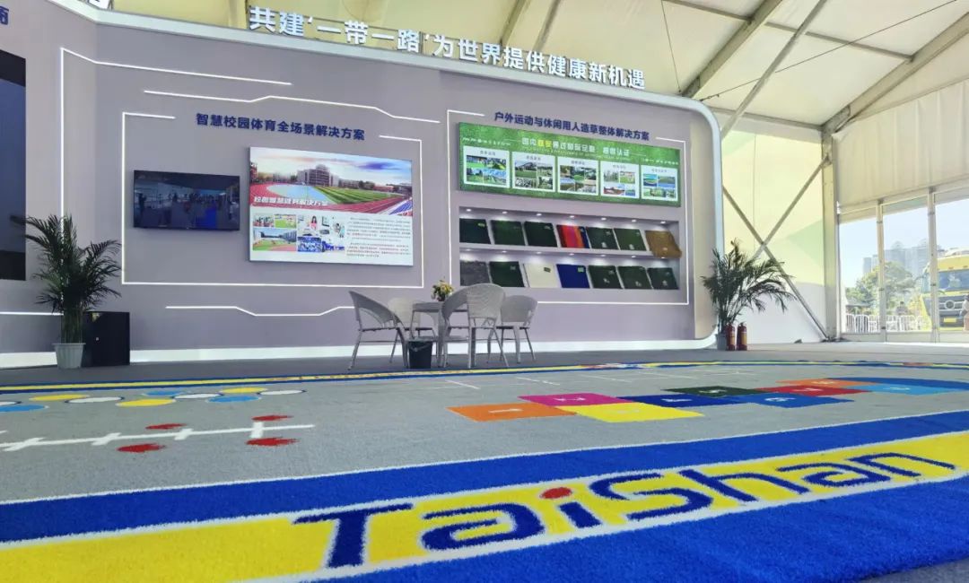金年会|jinnianhui携户外运动与休闲人造草整体解决方案亮相会场。作为国内首家通过足联、曲联双认证的企业可根据不同用户的户外运动需求,生产多种类型的户外运动草坪。
