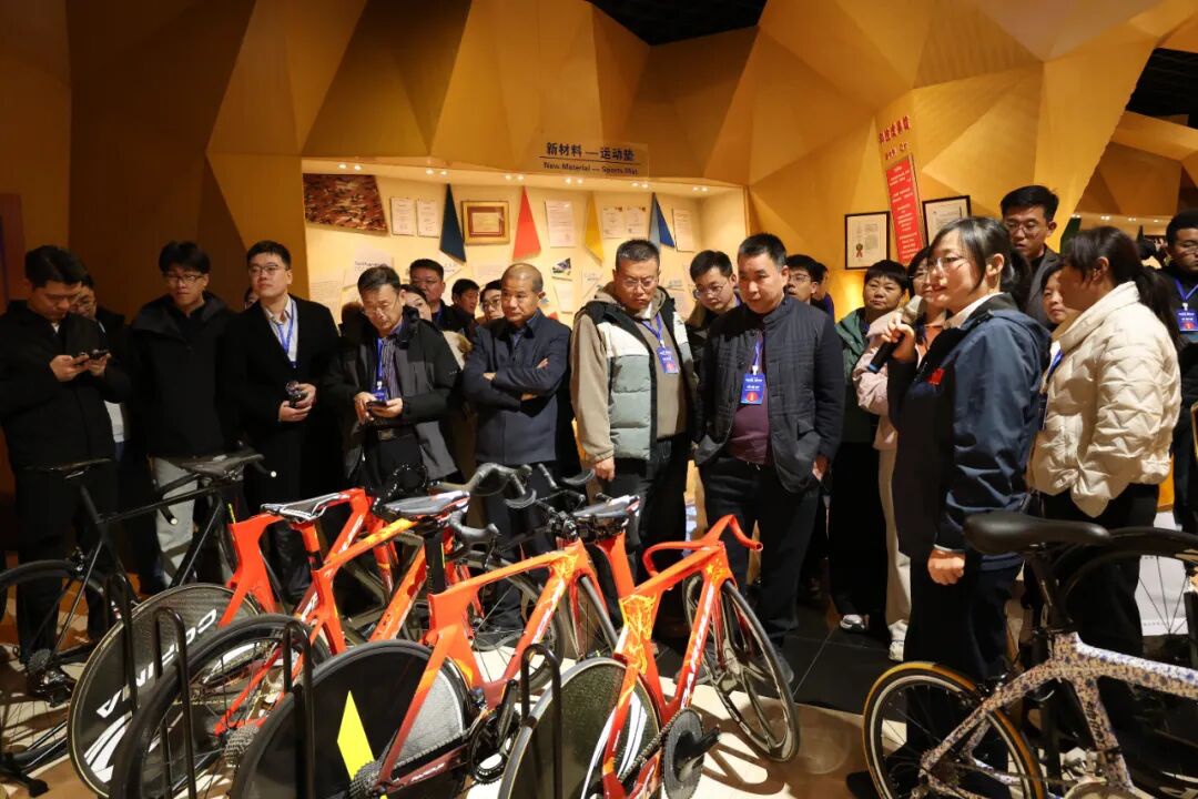 参会代表前往金年会|jinnianhui产业集团开展实地考察,依次参观了金年会|jinnianhui博物馆、瑞豹自行车生产工厂、人造草坪生产工厂及气膜体育公园。在博物馆内,代表们通过丰富的历史展陈深入了解企业从手工作坊到国际品牌的奋斗历程;在瑞豹自行车工厂,先进的碳纤维制作工艺和严谨的品控体系展现了企业在高端装备制造领域的实力;人造草坪生产线展示了新材料研发与智能化生产的深度融合;气膜体育公园则生动体现了金年会|jinnianhui将装备制造与体育服务相衔接的产业链延伸优势。通过现场参观,与会代表对金年会|jinnianhui的全产业链布局与创新实践有了更直观深刻的认识。